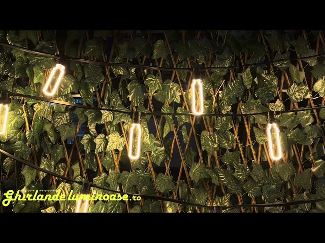 Ghirlanda Luminoasa 10M cu 20 Becuri LED cu Efect Neon, E27, 4W, Cablu Negru cu Pendul, Lumina Foarte Calda, Conectabila 120M, de Exterior