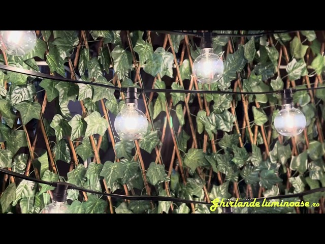 Ghirlanda Luminoasa 10M cu 20 Becuri LED cu Efect Neon, E27, 4W, Cablu Negru cu Pendul, Lumina Foarte Calda, Conectabila 120M, de Exterior