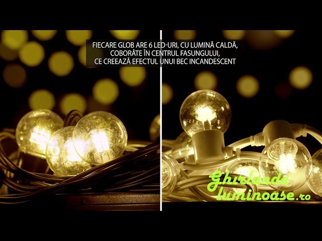 Ghirlanda Luminoasa 10M cu 20 Globuri LED Clare, Cablu Negru, Lumina Calda, Conectabila 30M, de Exterior Ghirlanda Luminoasa 10M cu 20 Globuri LED Clare, Cablu Negru, Lumina Calda, Conectabila 30M, de Exterior
